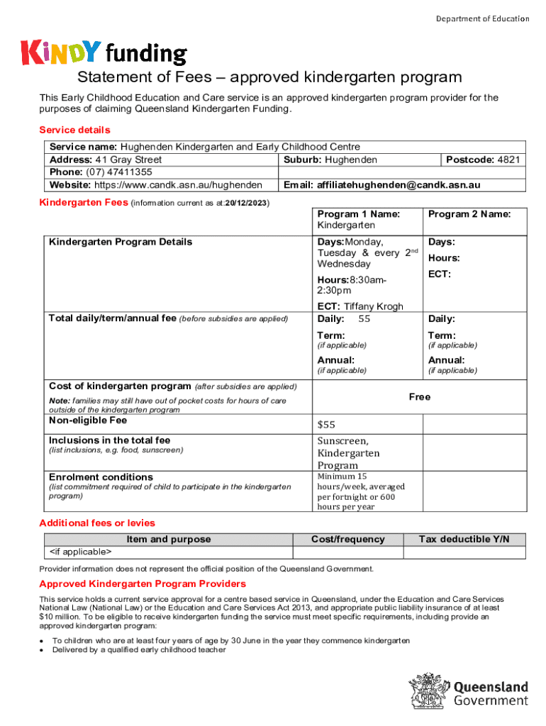 Get the free Hughenden Kindergarten and Early Childhood Centre