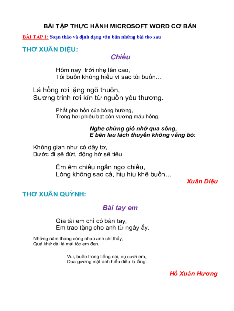 Get the free BI TP 1: Son tho v nh dng vn bn nhng bi th sau
