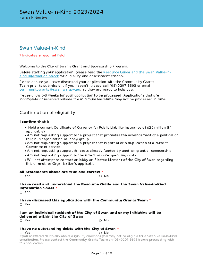 Welcome to the City of Swan\'s Grant and Sponsorship Program.