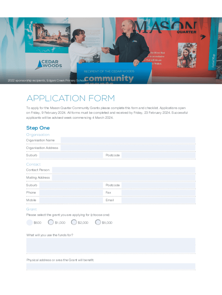 To apply for the Mason Quarter Community Grants please complete this form and checklist.