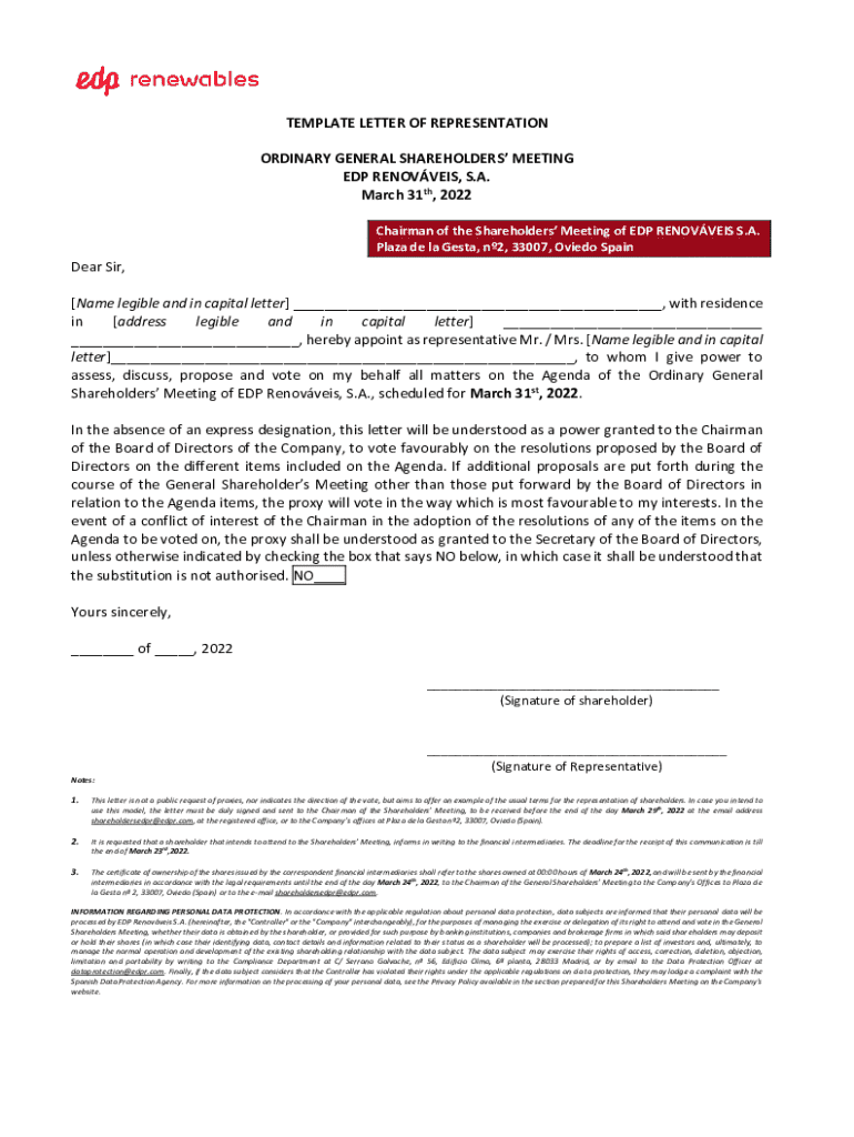 Chairman of the Shareholders Meeting of EDP REMOVES S.A.