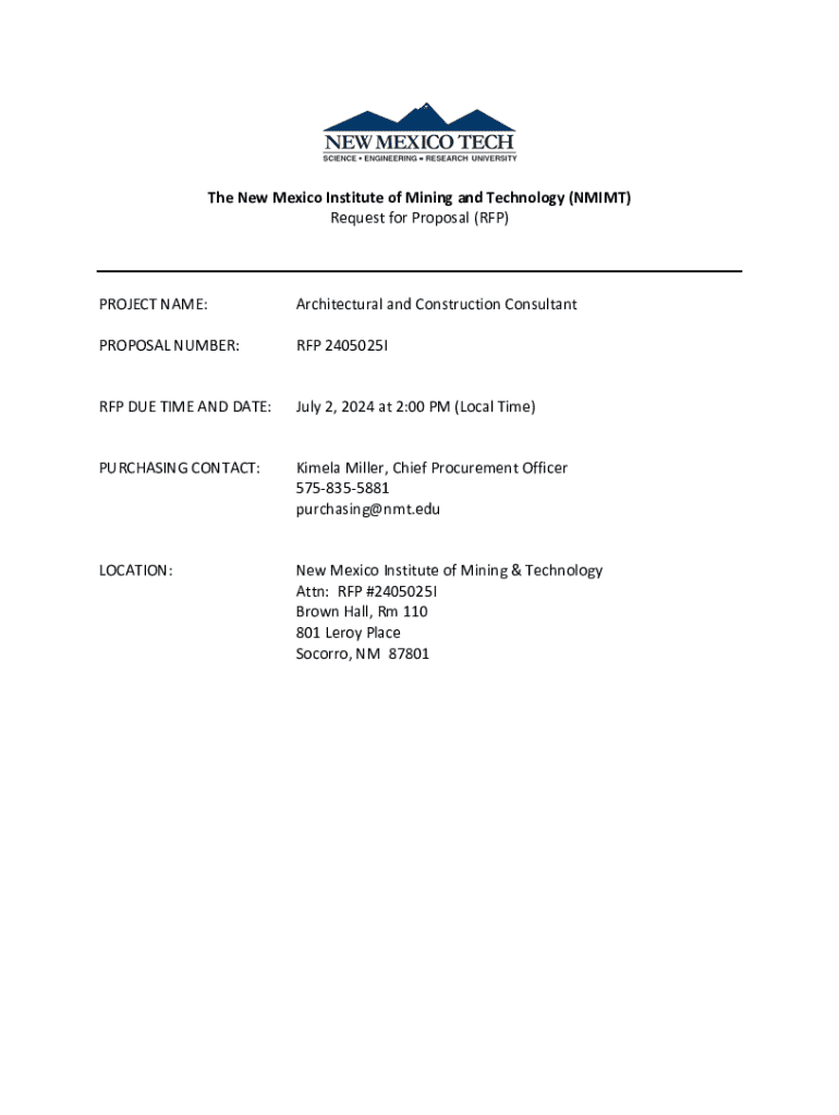 Request for Proposal (RFP)PROJECT NAME:Architectural and Construction ConsultantPROPOSAL NUMBER:RFP 2405025IRFP DUE TIME AND DATE:July 2,