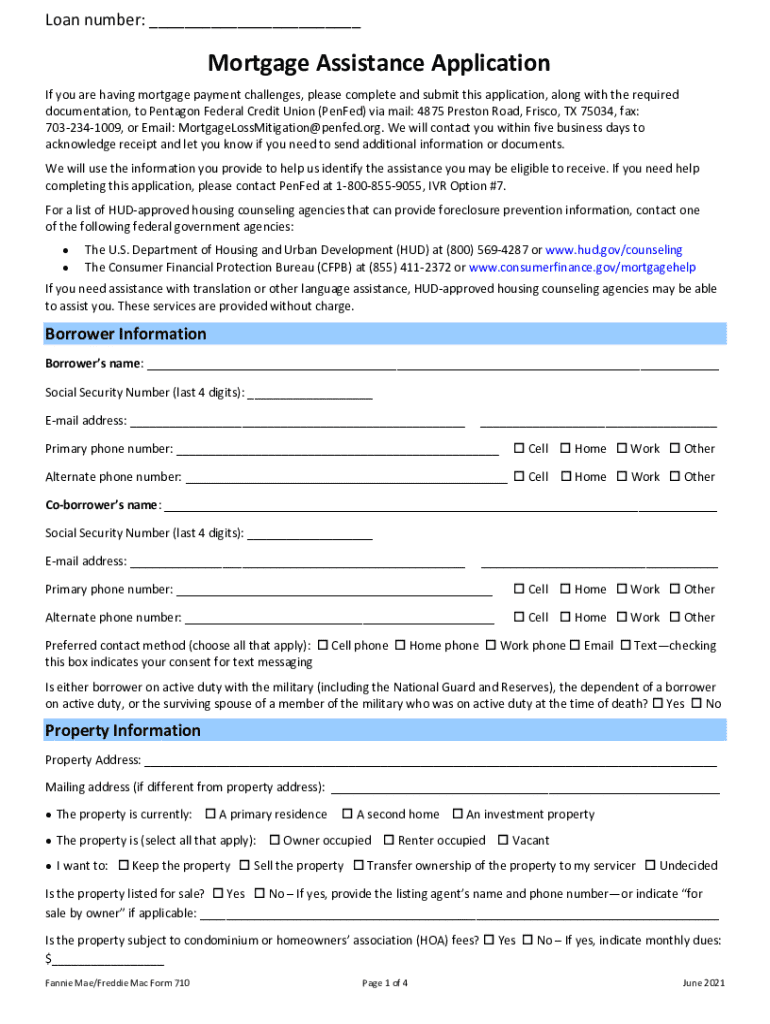 Borrowers applying for conventional loans that are backed by Fannie Mae or Freddie Mac are required to file PenFed Fannie Mae/Freddie Mac Form 710 as part of their loan application process.