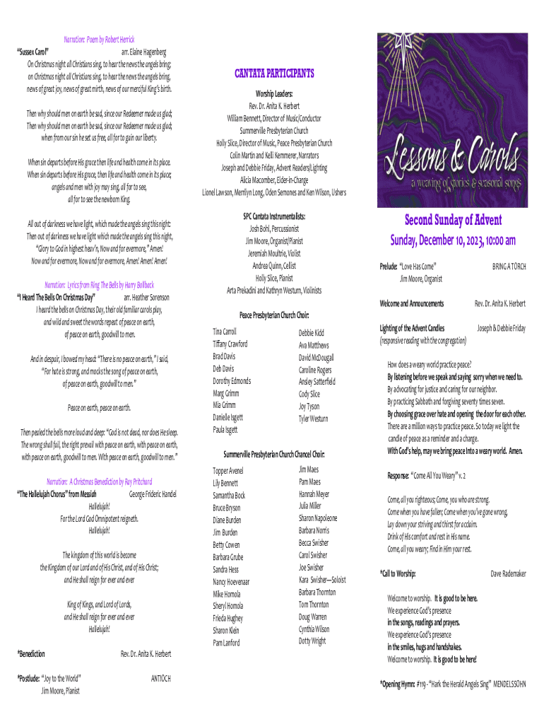Narration: Poem by Robert Herrick Sussex Carol arr. Elaine Hagenberg On Christmas night all Christians sing, to hear the news the angels bring; on Christmas night all Christians sing, to hear the