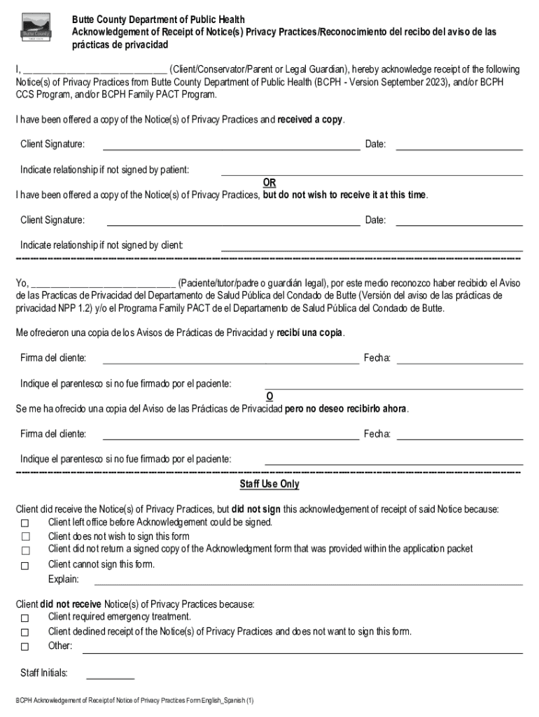 Get the free Butte County Department of Public Health Acknowledgement of ...