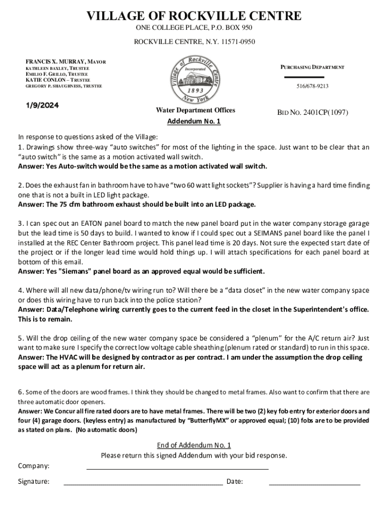 FRANCIS X. MURRAY, MAYORPURCHASING DEPARTMENTKATHLEEN BAILEY, TRUSTEE