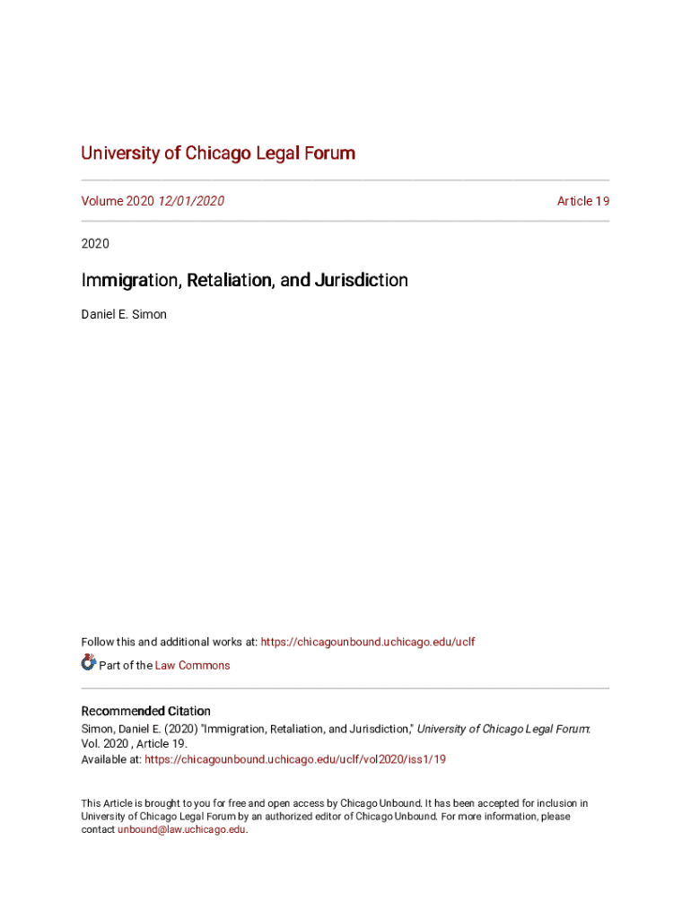 Volume 2020 12/01/2020Article 192020Immigration, Retaliation, and Jurisdiction