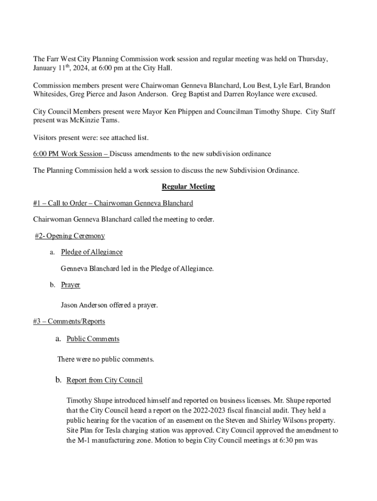 The Far West City Planning Commission work session and regular meeting was held on Thursday,