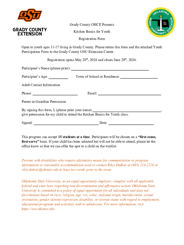 Grady County ONCE PresentsGRADY COUNTYKitchen Basics for Youth