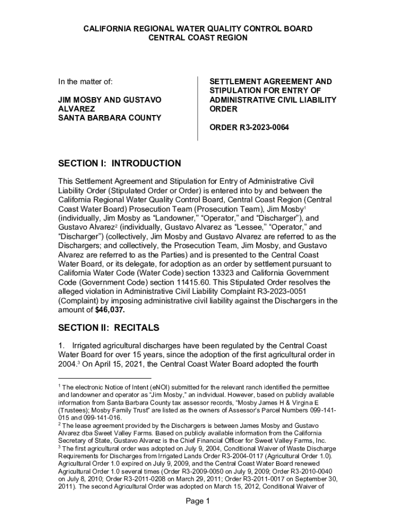 SANTA BARBARA COUNTYSETTLEMENT AGREEMENT AND