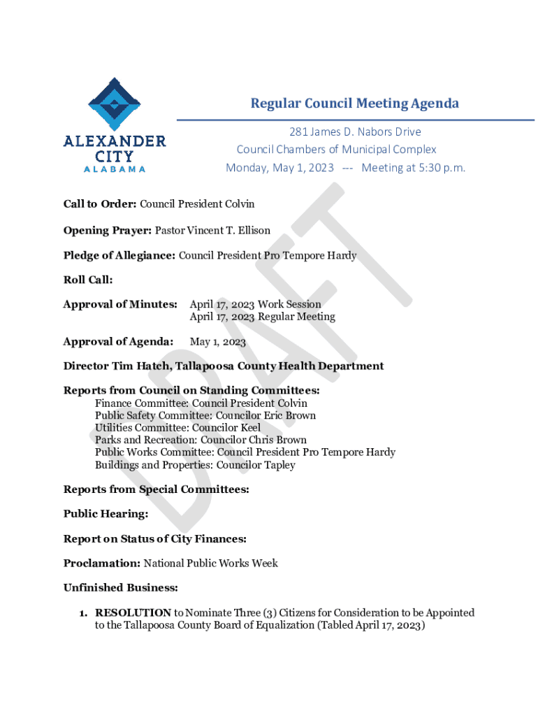 Regular Council Meeting Agenda