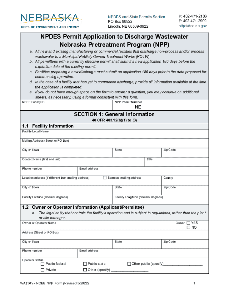 Entities that discharge pollutants into U.S. waters, including industrial facilities and municipalities, are required to file the NPP form - NDEE.