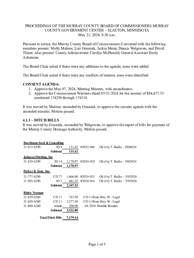 Get the free PROCEEDINGS OF THE MURRAY COUNTY BOARD OF COMMISSIONERS MURRAY