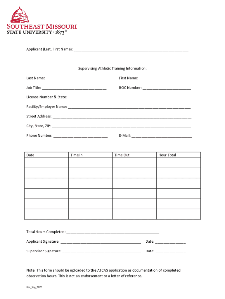 Applicant (Last, First Name): ___Supervising Athletic Training Information:
