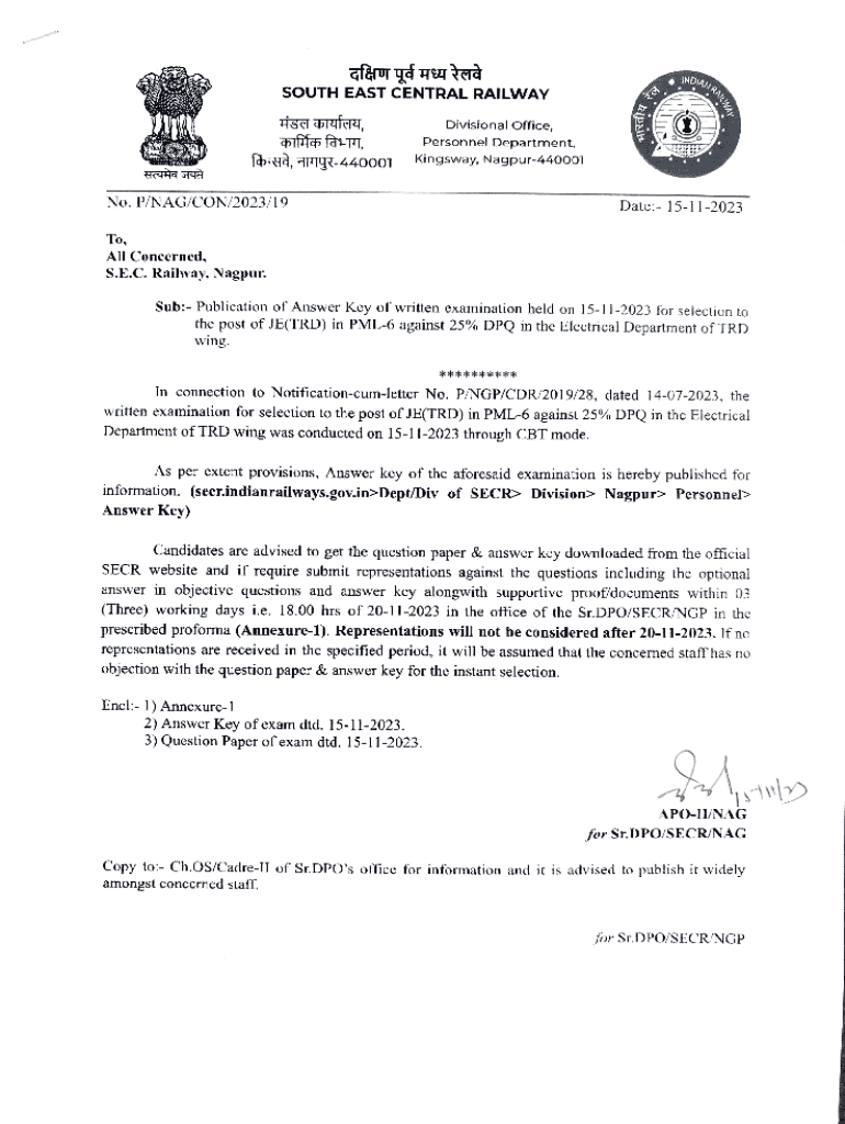 King sway, Nagpur440001No. P/NAG/CON/2023/19Date: 15112023To,Concerned, S.E.C. Railway, Nagpur.