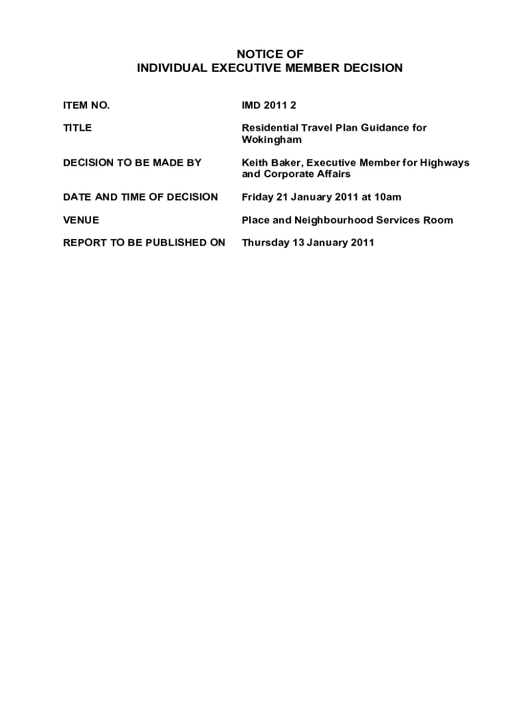 ITEM NO.IMD 2011 2TITLEResidential Travel Plan Guidance for