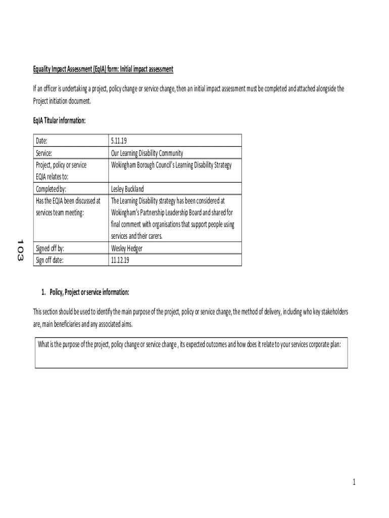 Equality Impact Assessment (EIA) form: Initial impact assessment
