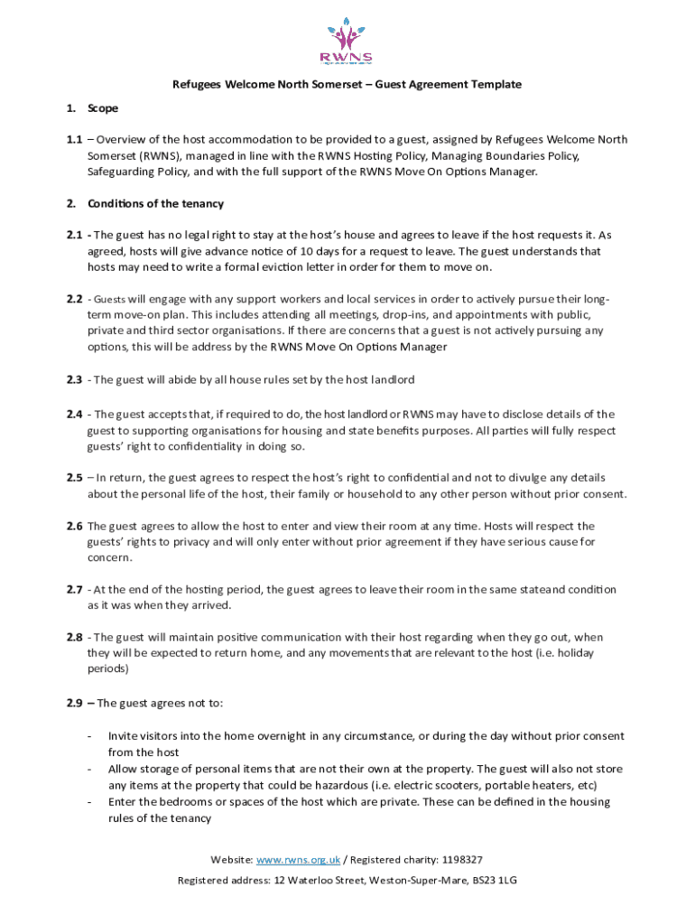Get the free Guest Agreement Template 1 ... - Refugees Welcome North Somerset