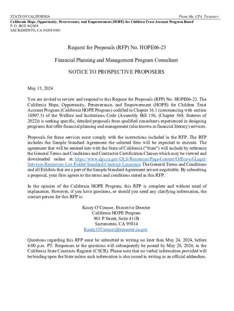 Get the free HOPE Contact Information - State Treasurer's Office - CA.gov