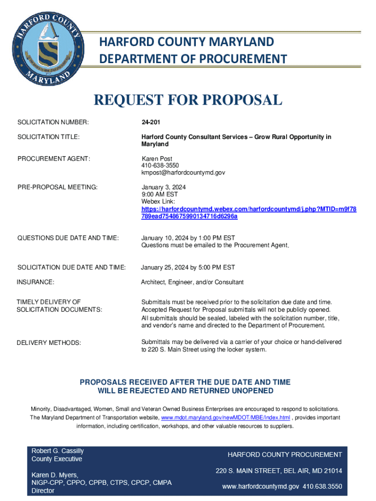 SOLICITATION NUMBER:24201SOLICITATION TITLE:Harford County Consultant Services Grow Rural Opportunity in