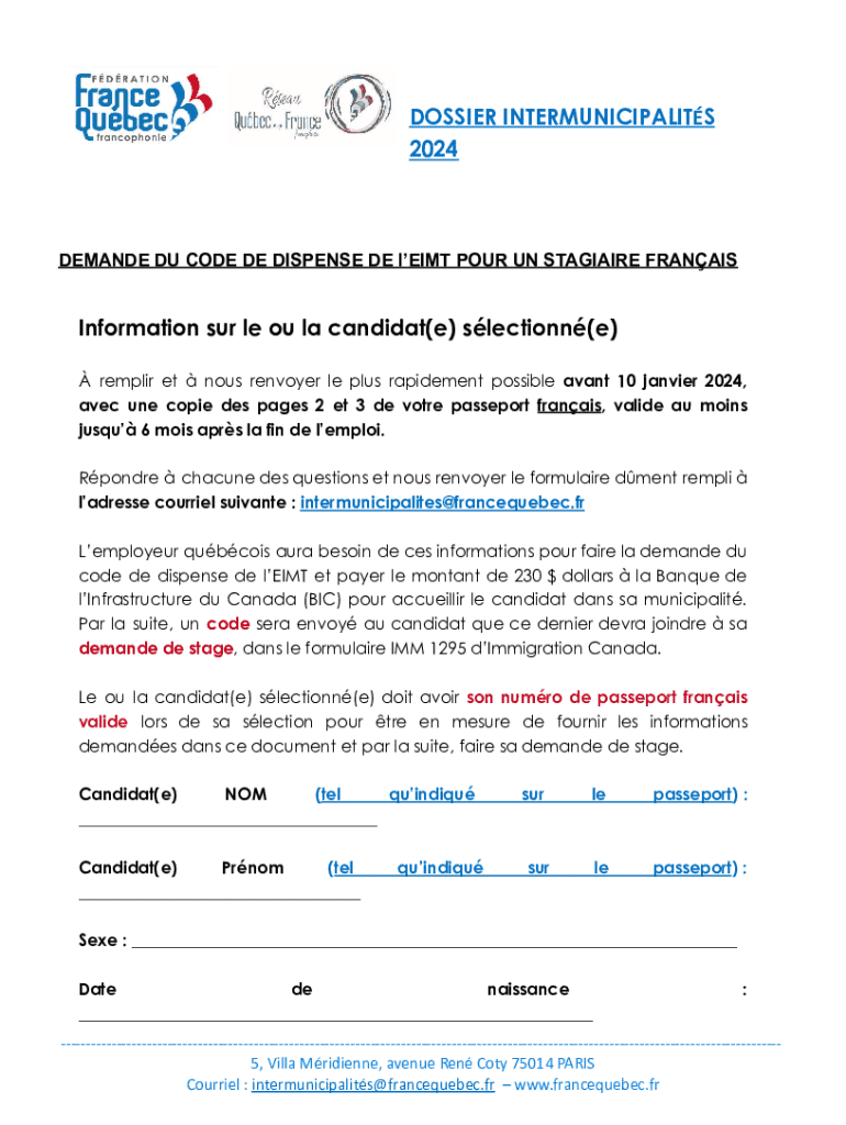 2024DEMANDE DU CODE DE DISPENSE DE left POUR UN STABILIZE FRANAISInformation SUR LE of la candidate(e) election(e)