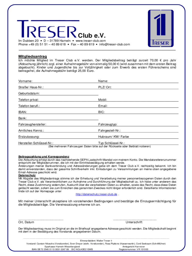 Phone +49 (0) 51 51 40 89 618 Fax 40 89 619 info@treserclub.comMitgliedsantrag