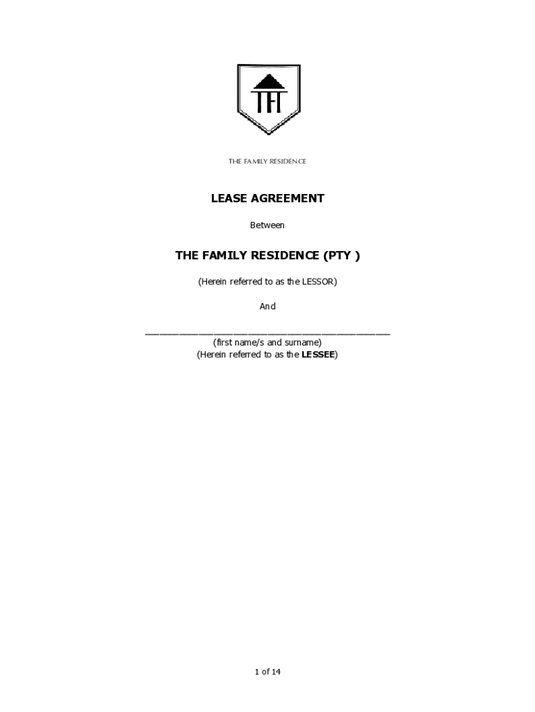 (Herein referred to as the LESSEE)1 of 14THE FAMILY RESIDENCESCHEDULE OF LEASE