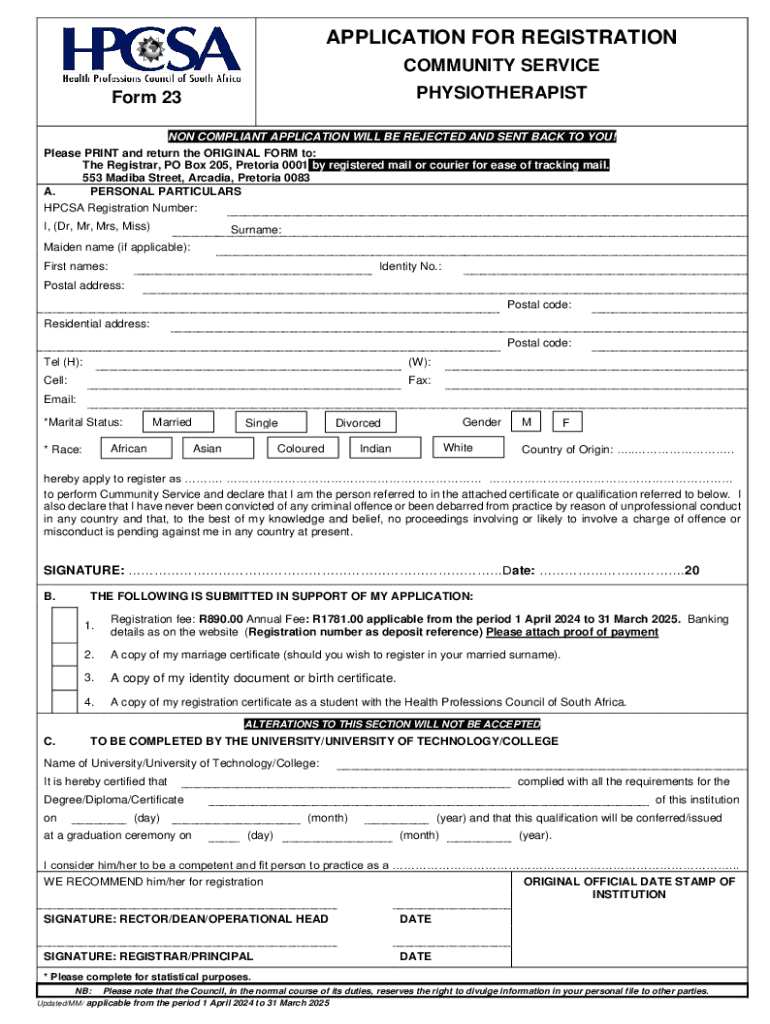 PHYSIOTHERAPISTForm 23NON COMPLIANT APPLICATION WILL BE REJECTED AND SENT BACK TO YOU!