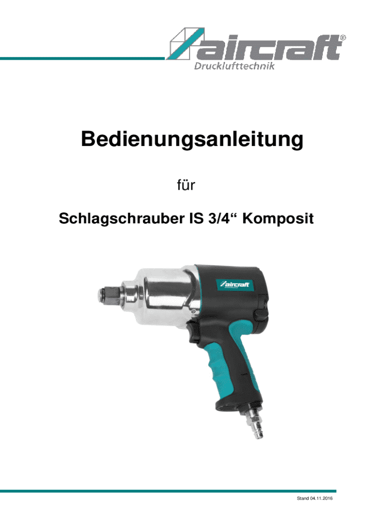 Bedienungsanleitung fr Schlagschrauber IS 3/4 KompositStand 04.11.2016Betriebsanleitung Schlagschrauber IS 3/4 Komposit Stand 04.11.2016Sehr geehrter Kunde, vielen Dank fr den Kauf eines Produktes