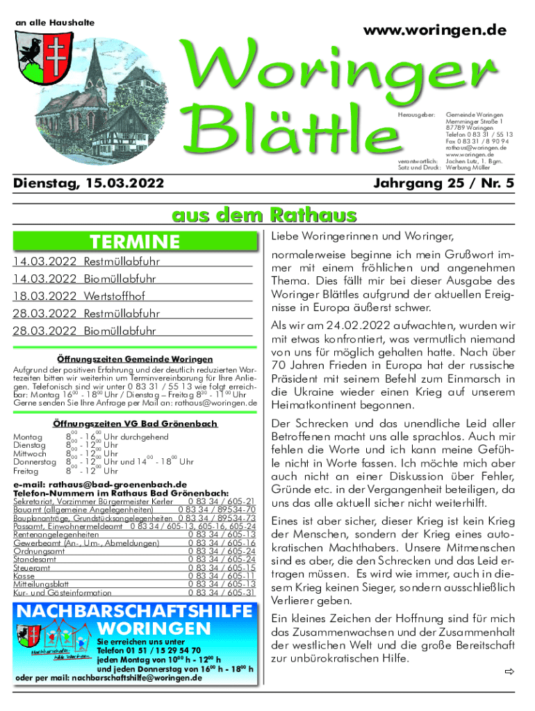 An all Haushaltewww.workingmen.deHerausgeber:Demand WoringenMemminger Straw 187789 WoringenTelefon 0 83 31 / 55 13Fax 0 83 31 / 8 90 94rathaus@woringen.dewww.woringen.de