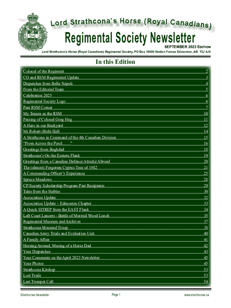 Get the free Regimental Society Newsletter S s - Lord Strathcona's Horse