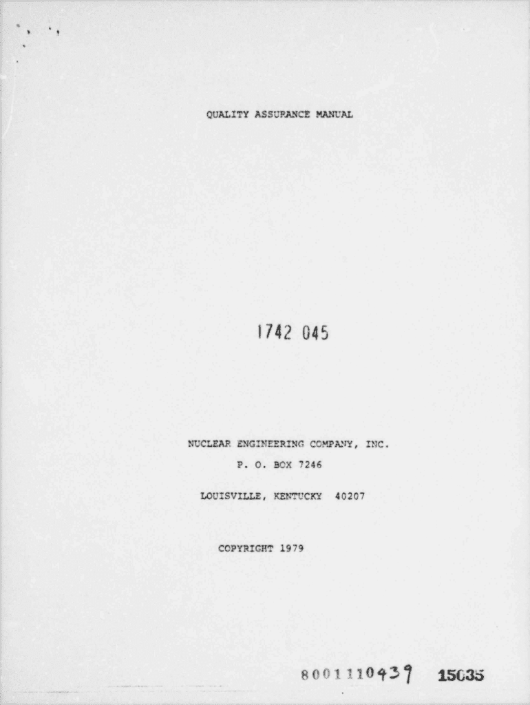\'.\'., oQUALITY ASSURANCE MANUAL1742 045NUCLEAR ENGINEERING COMPANY, INC.