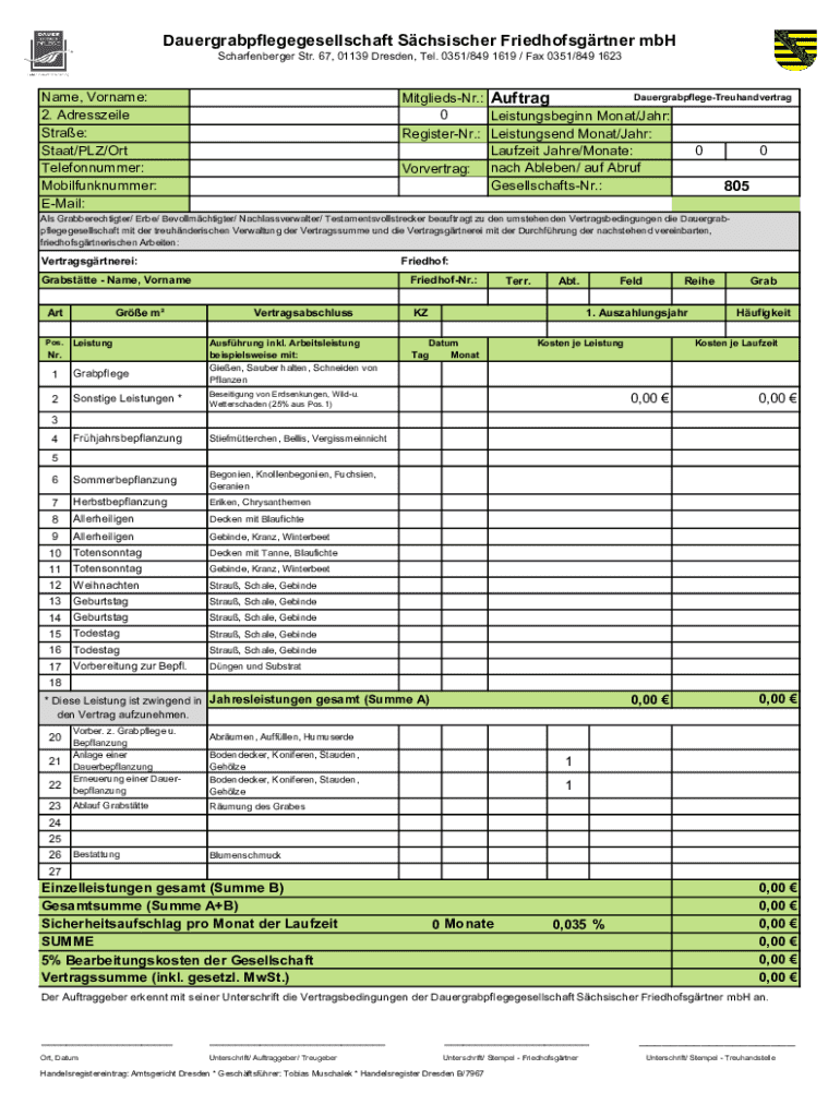 Dauergrabpflegegesellschaft Schsischer Friedhofsgrtner mbH Scharfenberger Str. 67, 01139 Dresden, Tel. 0351/849 1619 / Fax 0351/849 1623Name, Vorname: 2. Adresszeile Strae: Staat/PLZ/Ort Telefonnummer: