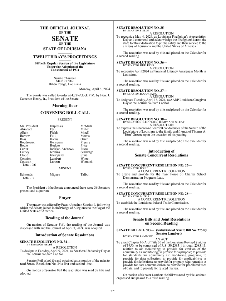 SENATE RESOLUTION NO. 35THE OFFICIAL JOURNAL SENATOR FIELDS THEA RESOLUTION To recognize May 4, 2024, as Louisiana Firefighter\'s Appreciation Day and commend and acknowledge the firefighters across