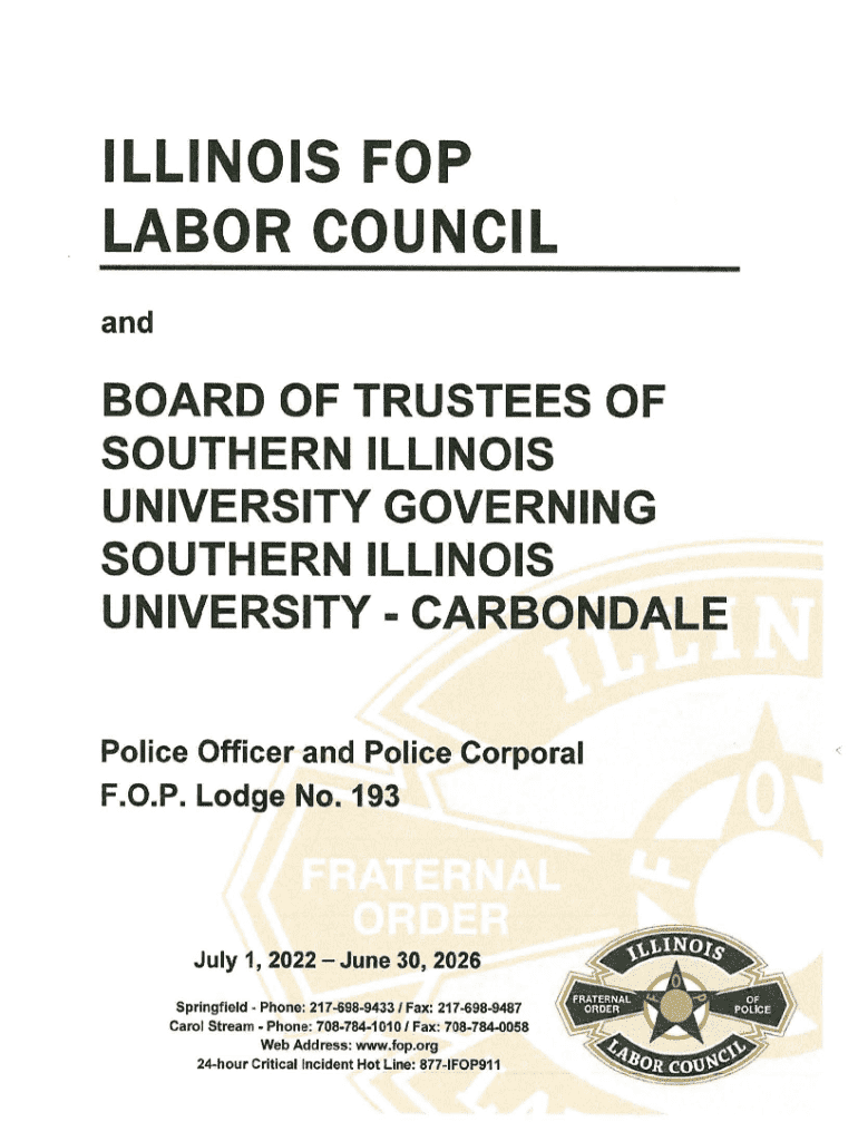 ILLINOIS FOP LABOR COUNCIL andBOARD OF TRUSTEES OF SOUTHERN ILLINOIS UNIVERSITY GOVERNING SOUTHERN ILLINOIS UNIVERSITY CARBONDALE Police Officer and Police Corporal F.O.P. Lodge No. 193July 1, 2022