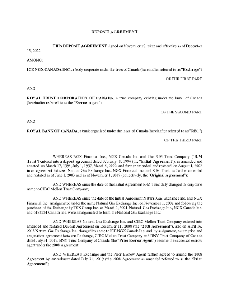 DEPOSIT AGREEMENT15, 2022.THIS DEPOSIT AGREEMENT signed on November 29, 2022 and effective as of DecemberAMONG: ICE NGX CANADA INC., a body corporate under the laws of Canada (hereinafter referred