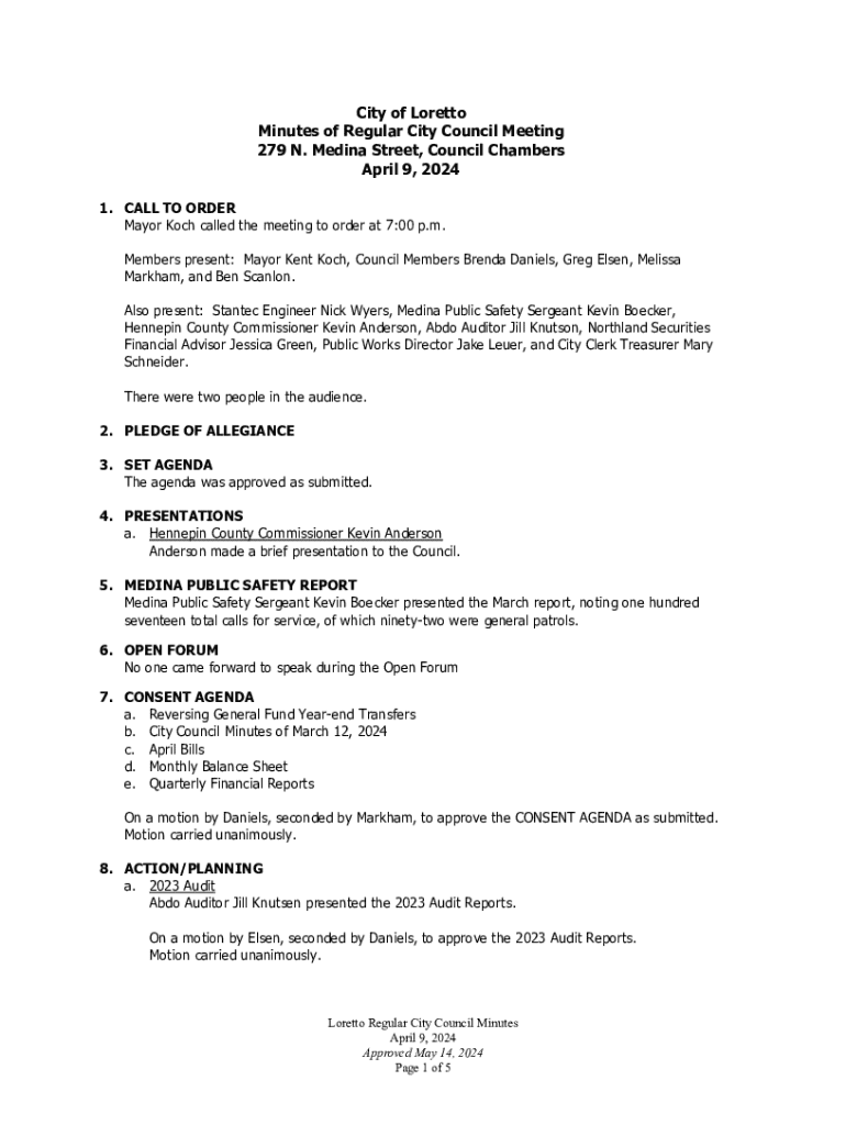 Minutes of Regular City Council Meeting