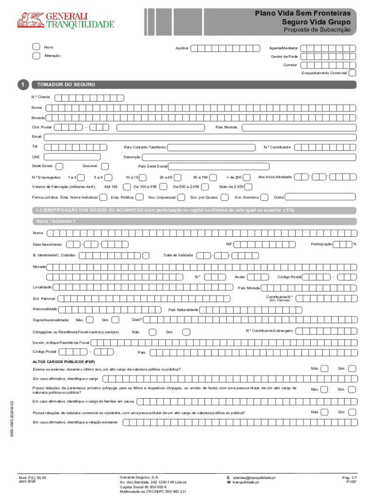 Segura Vida GrupoProposta de SubscrioNovoApliceAgente/MediadorAlteraoGestor de Rede