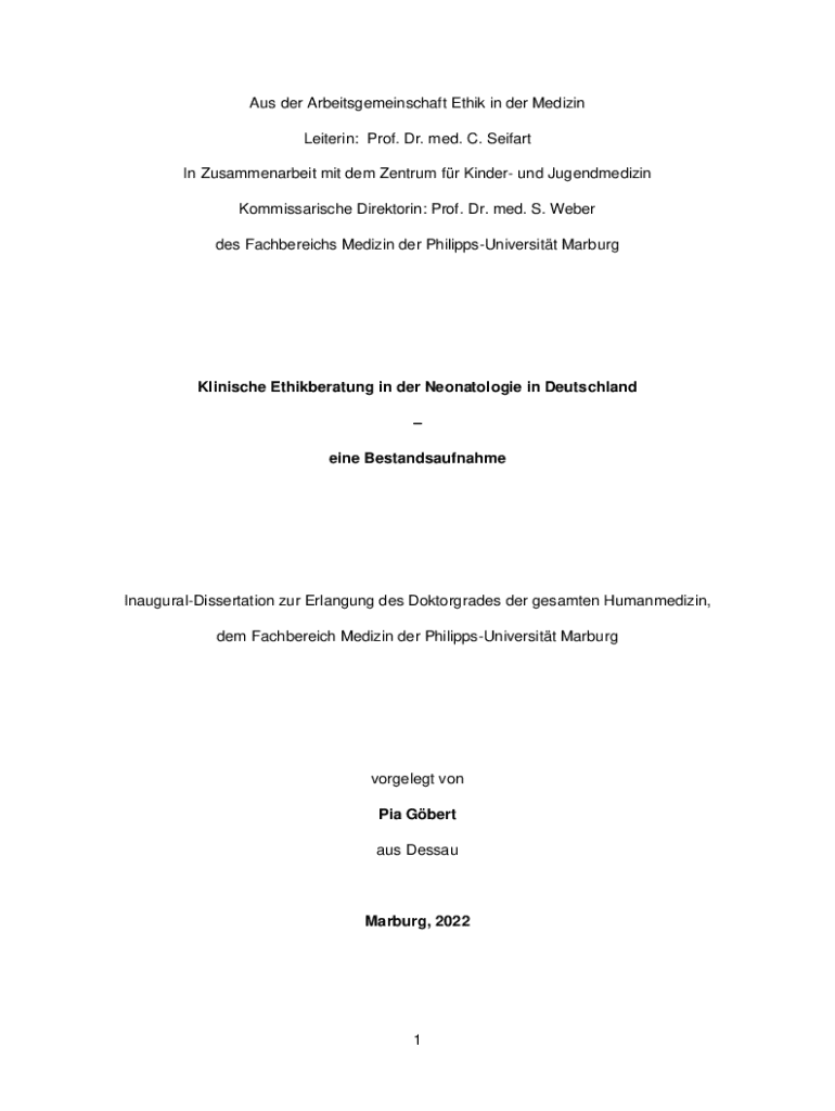Kommissarische Director: Prof. Dr. med. S. Weber