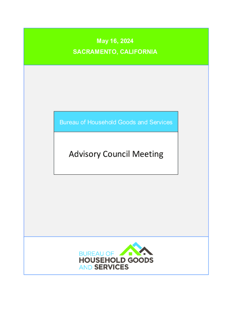 SACRAMENTO, CALIFORNIABureau of Household Goods and ServicesAdvisory Council MeetingBUSINESS, CONSUMER SERVICES AND HOUSING AGENCY GAVIN NEWSOM, GOVERNORDEPARTMENT OF CONSUMER AFFAIRS
