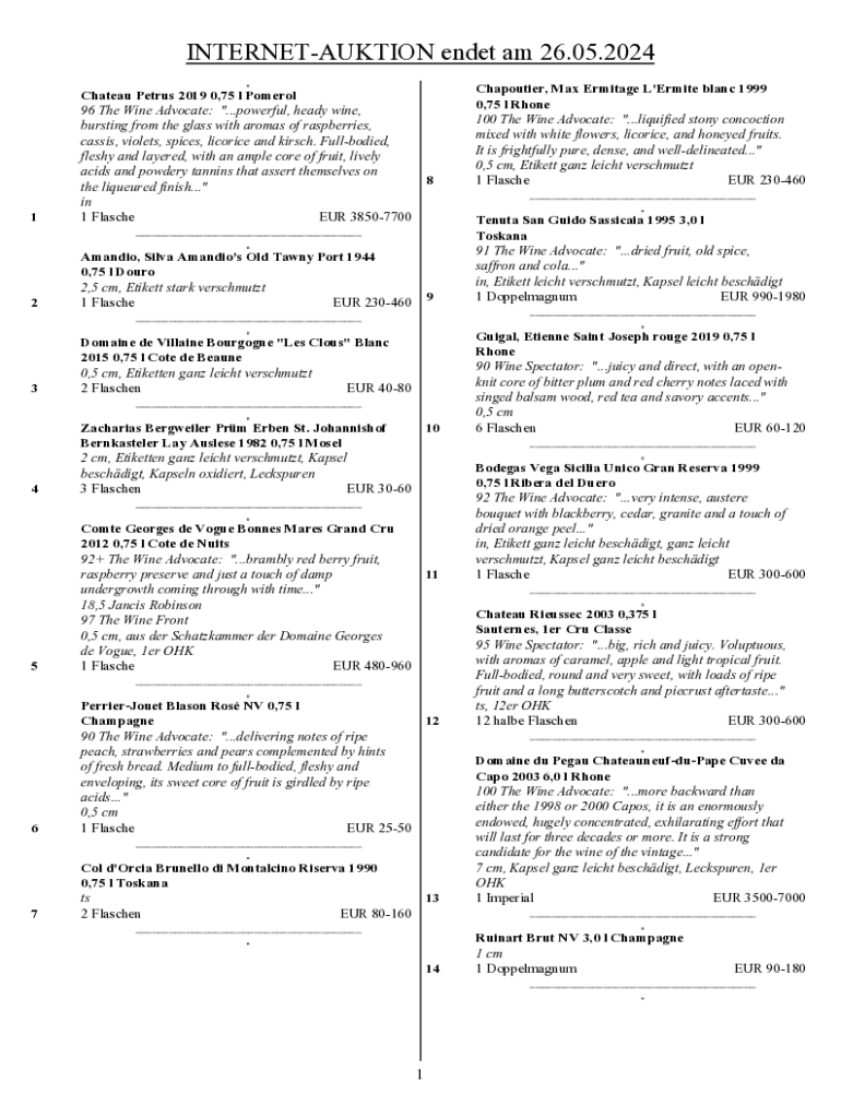 INTERNETAUKTION ended am 26.05.20241Chateau Petrus 2019 0,75 l Pomeroy