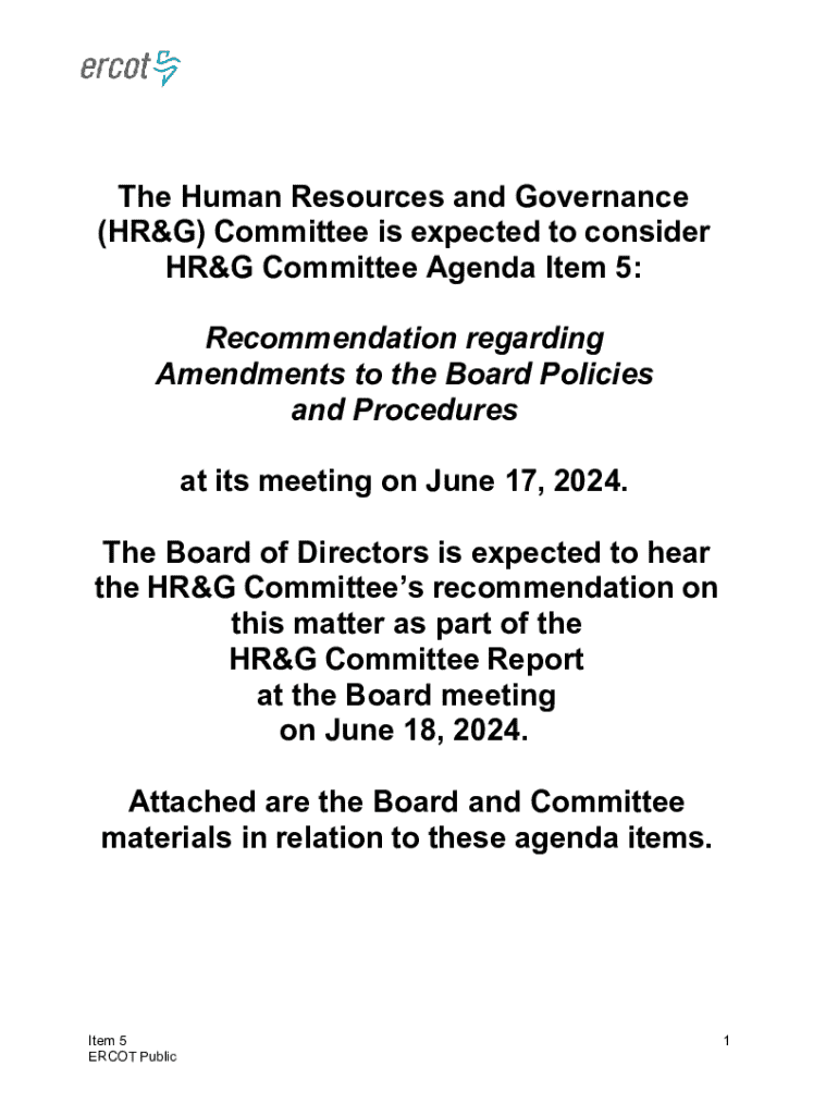 The Human Resources and Governance (DRUG) Committee is expected to consider DRUG Committee Agenda Item 5: Recommendation regarding Amendments to the Board Policies and Procedures at its meeting on