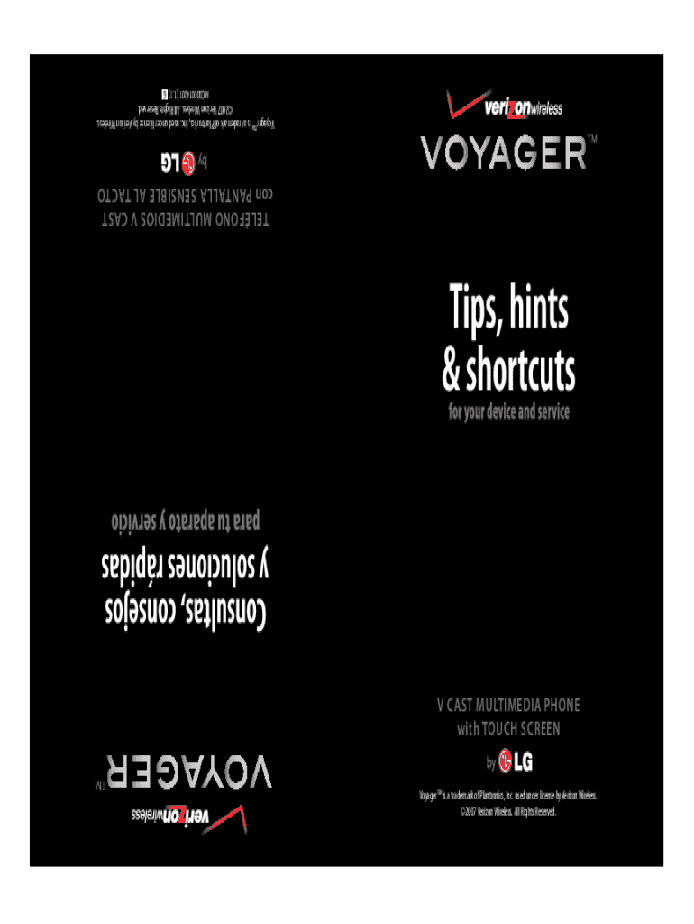 Voyager TM is a trademark of Electronics, Inc. used under license by Verizon Wireless. 2007 Verizon Wireless. All Rights Reserved. V CAST MULTIMEDIA PHONE with TOUCH SCREEN BELONG MULTIMEDIA V CAST