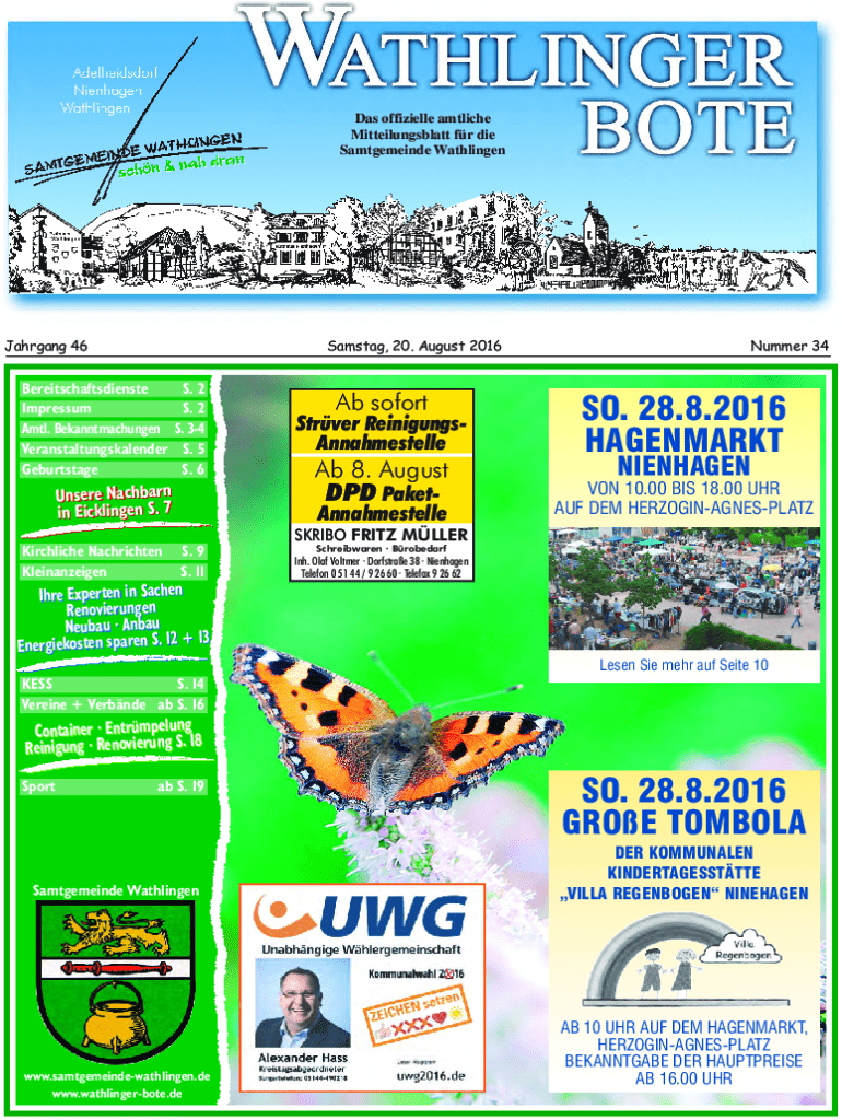 Samtgemeinde WathlingenJahrgang 46Samstag, 20. August 2016Bereitschaftsdienste
