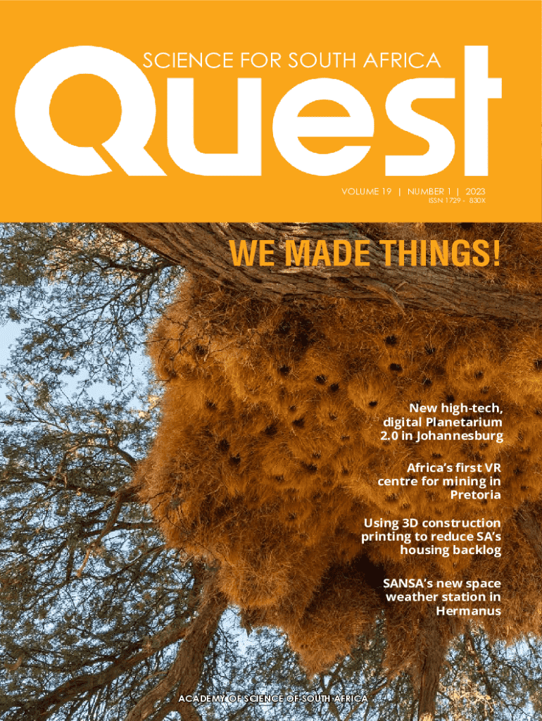 SCIENCE FOR SOUTH AFRICAVOLUME 19 | NUMBER 1 | 2023 ISSN 1729 830XWE MADE THINGS!New hightech, digital Planetarium 2.0 in Johannesburg Africas first VR centre for mining in Pretoria Using 3D construction