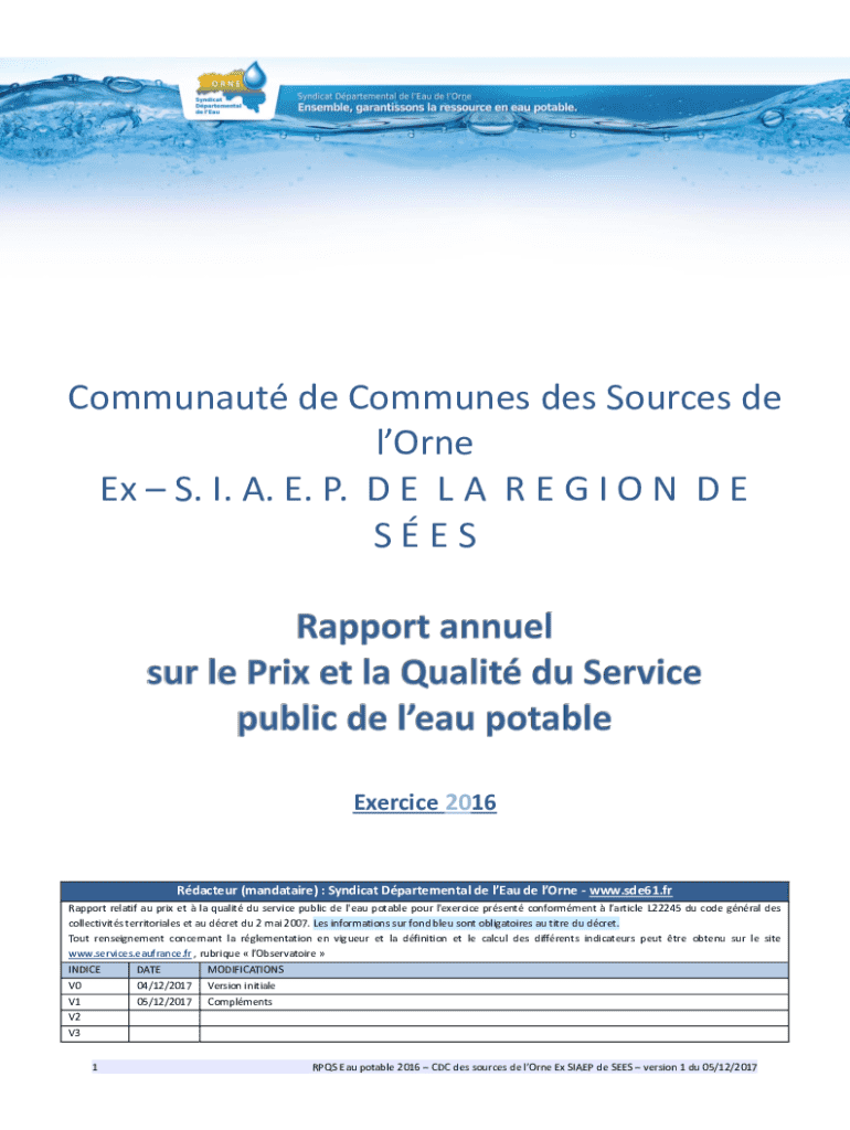 Communist de Communes DES Sources de borne Ex S. I. A. E. P. D E L A R E G I O N D E SESExercice 2016Rdacteur (mandate) : Syndicate Departmental de lead de borne www.sde61.fr Rapport related AU PRI