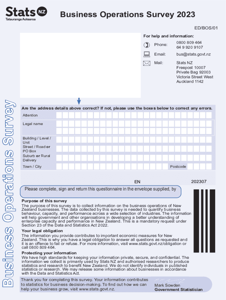 Businesses that meet certain size and industry thresholds, as defined by the survey guidelines, are required to file the Business Operations Survey 2023.