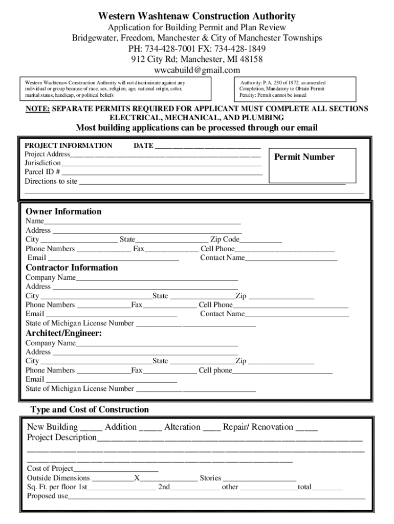 Fill out your building permits amp inspectionswwca online with pdfFiller!