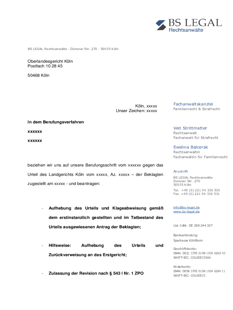 BS LEGAL Rechtsanwlte Dreyer STR. 270 50935 KlnOberlandesgericht Kiln
