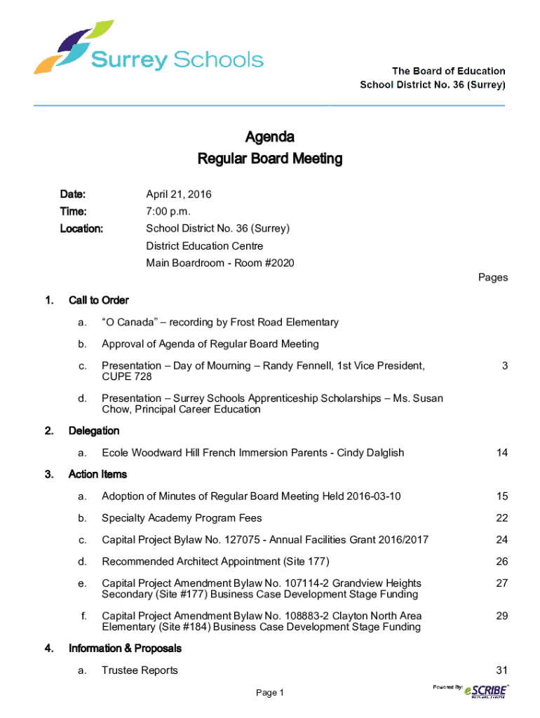 Date:April21,2016Time:7:00p.m. Location:SchoolDistrictNo.36(Surrey)